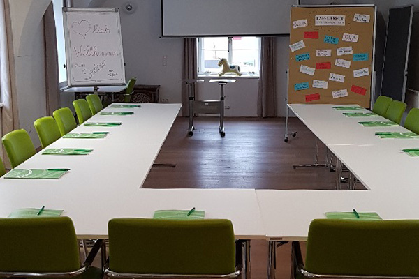 Hier können Sie sich mit rund 20 GeschäftspartnerInnen oder KollegInnen austauschen und ein Seminar oder einen Lehrgang abhalten. Gerne stellen wir Ihnen die technische Ausstattung und Arbeitsmaterialien für Ihre Tagung zur Verfügung. Es ist zusätzlich möglich Filme zu zeigen oder Klausuren zu halten.